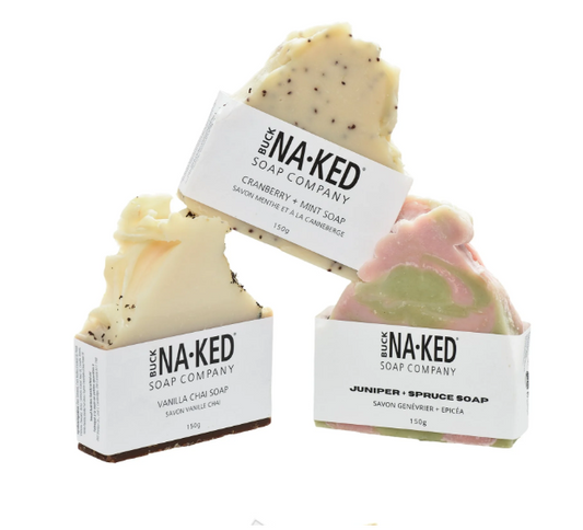 Bar Soap Trio: Vanilla Chai, Cranberry + Mint and Juniper + Spruce