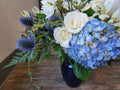 In this arrangement, the serenity of the color blue along with the purity of intention symbolized by white will let the family know you are sending your calm strength to them during these difficult times.