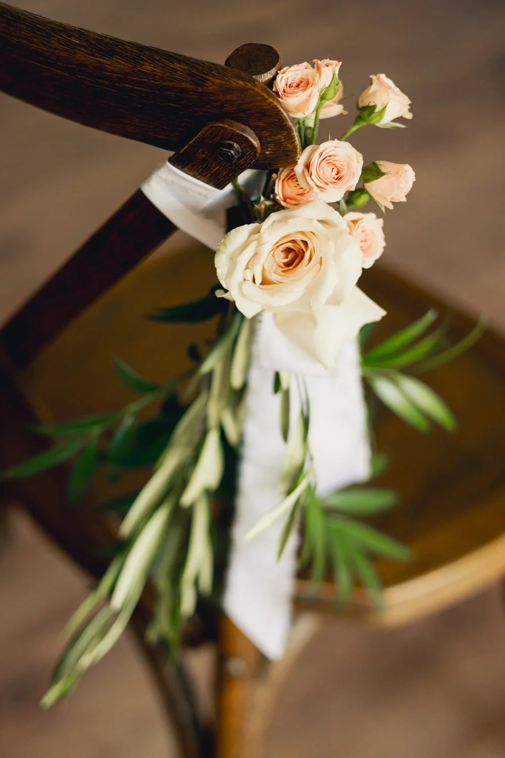 This aisle chair swag will add a touch of natural elegance to your wedding ceremony. The lush greenery or classic floral arrangement will create a beautiful, organic backdrop for you and your partner to walk down the aisle!