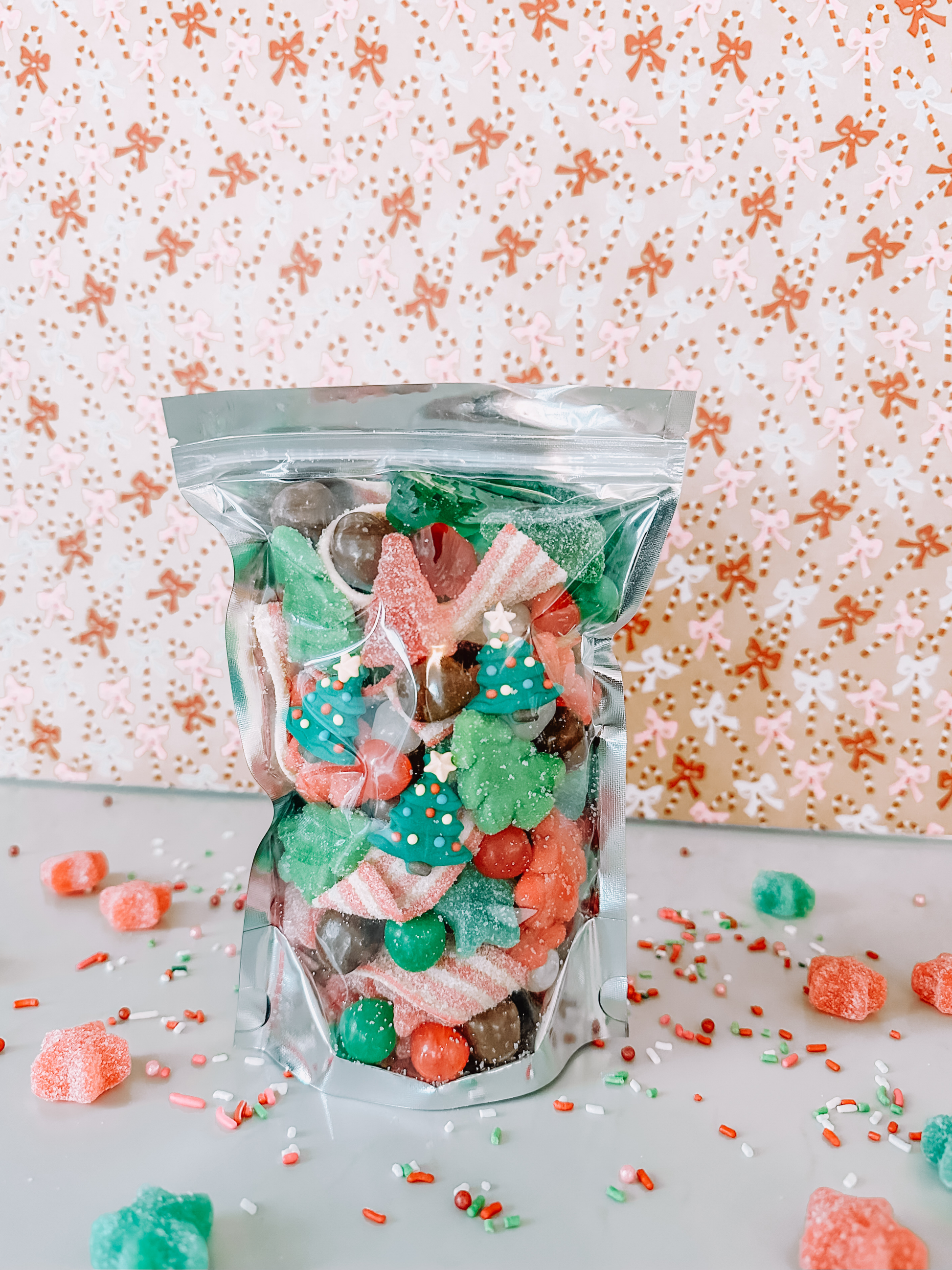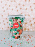 While the little elves scurry to decorate the tree and wrap presents, we imagine them sneaking bites of Elf’s Favorite Snacks; a fun, festive blend of holiday sweets. This cheerful mix brings holiday magic to every occasion. Elf's Favorite Snacks is packed with holiday cheer: gummy Christmas trees, sour balls, holiday ropes, gummy stars, chocolate caramel balls, and more come together in this delightful mix. Perfect for stocking stuffers, holiday candy boards, corporate gifting, or seasonal retail displays, this resealable pouch offers convenience, freshness, and plenty of festive charm. Whether customers share it or keep it all for themselves, Elf’s Favorite Snacks delivers something sweet for everyone. Each pouch is made to order, shelf-stable for 3–6 months, and available in limited quantities during the holiday season.