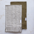 Our Olive Green and White Stripes Ruffle Kitchen Dish Towel from Luxe B Co. come in a set of 2 and are made from high-quality materials. Perfect for drying dishes and spills, they add style to any kitchen. Keep your countertops clean and dry with these durable and elegant towels.