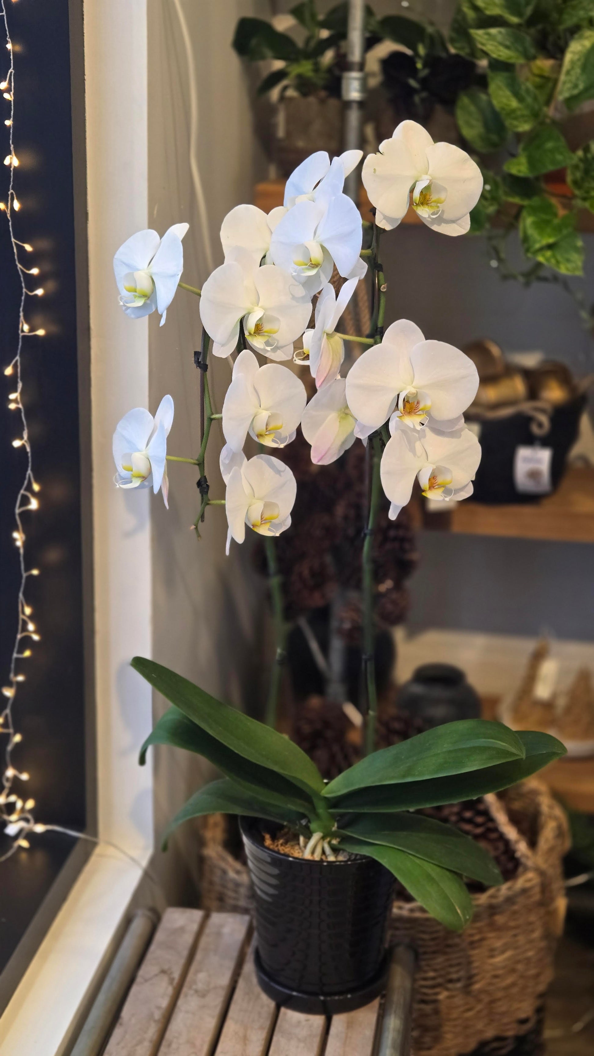 Bring effortless luxury into any space with our premium white Phalaenopsis orchid. Known for its long-lasting blooms and graceful arching stems, this orchid delivers a clean, modern aesthetic perfect for home or office.